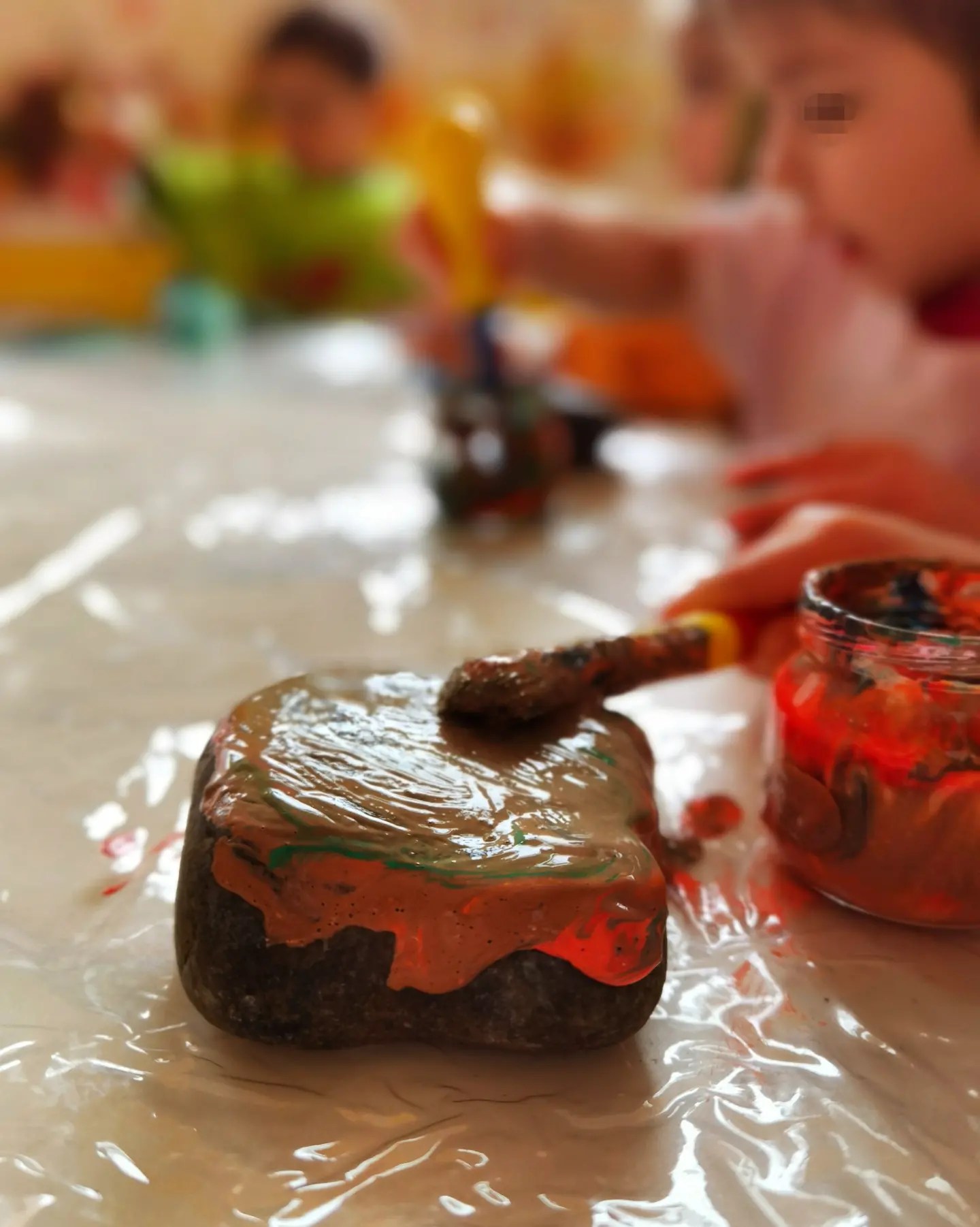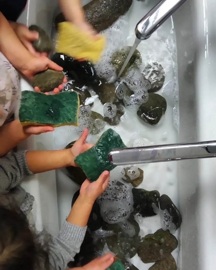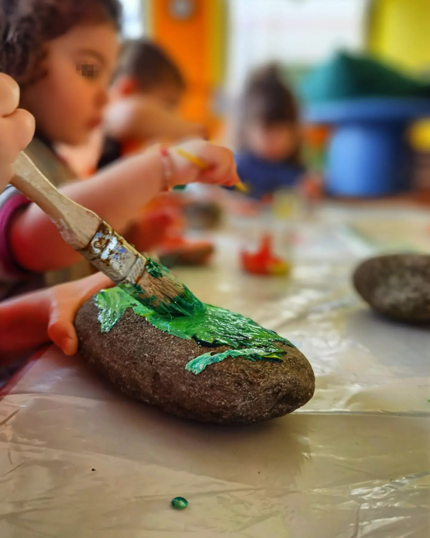 Oggi abbiamo dedicato la mattinata a pitturare questi sassi, per poterli poi spargere per la città e riempirla di colori con i nostri pensieri felici 🌈🎨