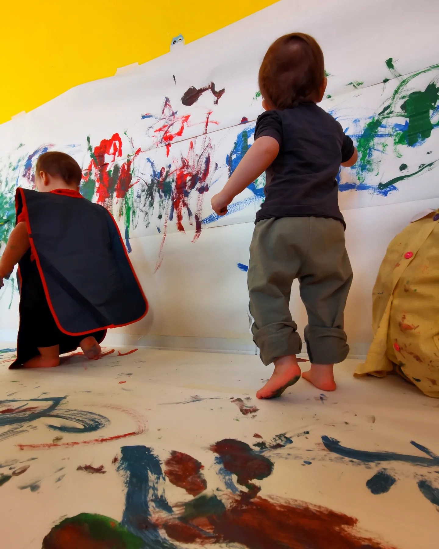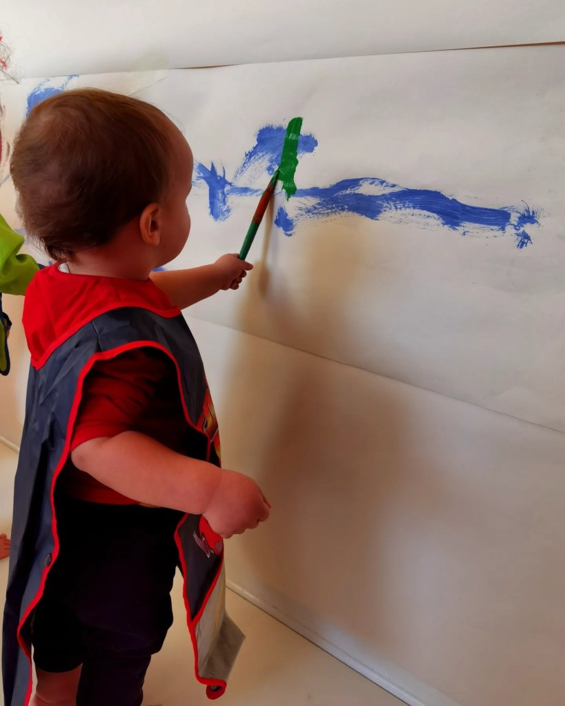 Oggi, come dei piccoli artisti, abbiamo dato spazio alla nostra creatività e alla nostra fantasia, creando una parete super colorata 🖌️