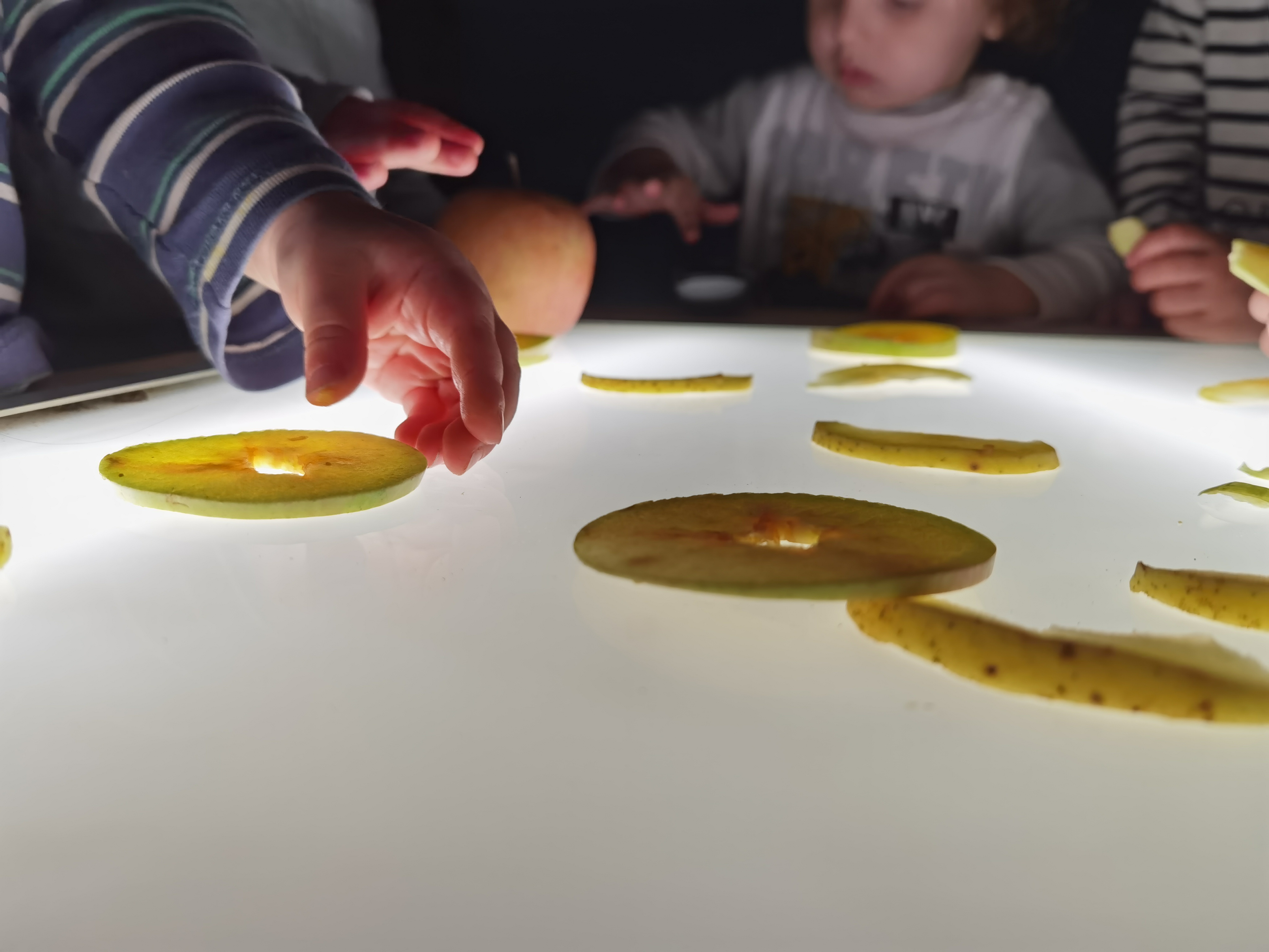 Questa mattina, con la lavagna luminosa, abbiamo osservato le mele in tutte le loro diverse forme. ✨🍏