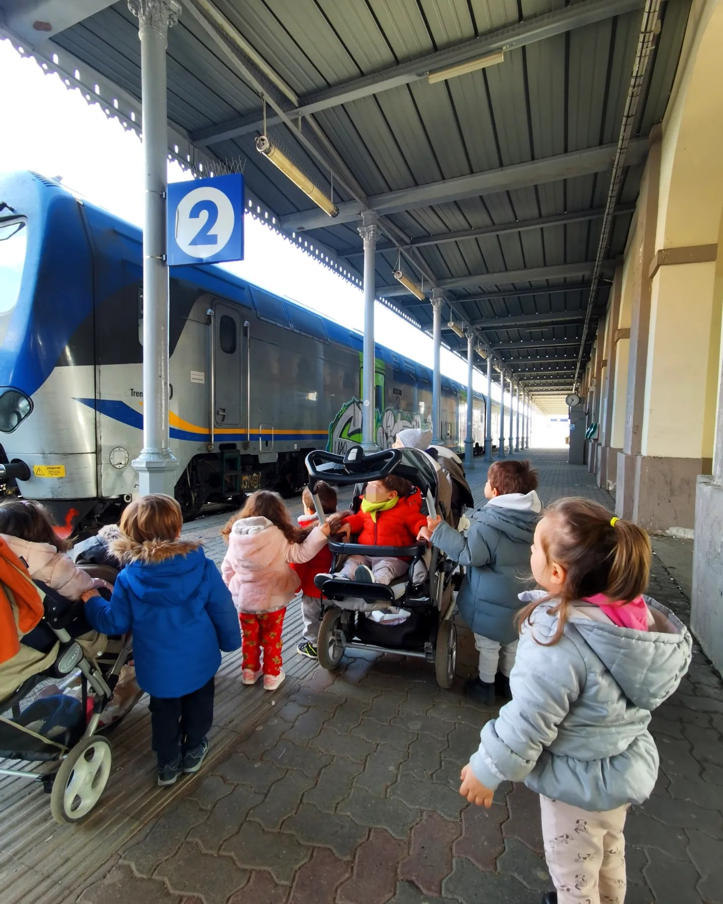 Siamo andati fino alla stazione dei treni, e abbiamo ammirato con stupore e meraviglia l’arrivo di un treno, abbiamo visto da vicino la sua grandezza e abbiamo potuto anche osservare da vicino i tabelloni delle partenze e ascoltare il suono del treno, godendoci così una bellissima mattinata ☀️