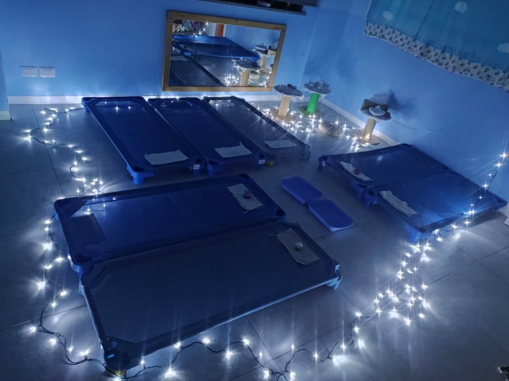 Questa mattina ci siamo rilassati e coccolati alla “spa” del nido tra creme, massaggi, lucine soffuse, profumi e tisanine rilassanti. ✨