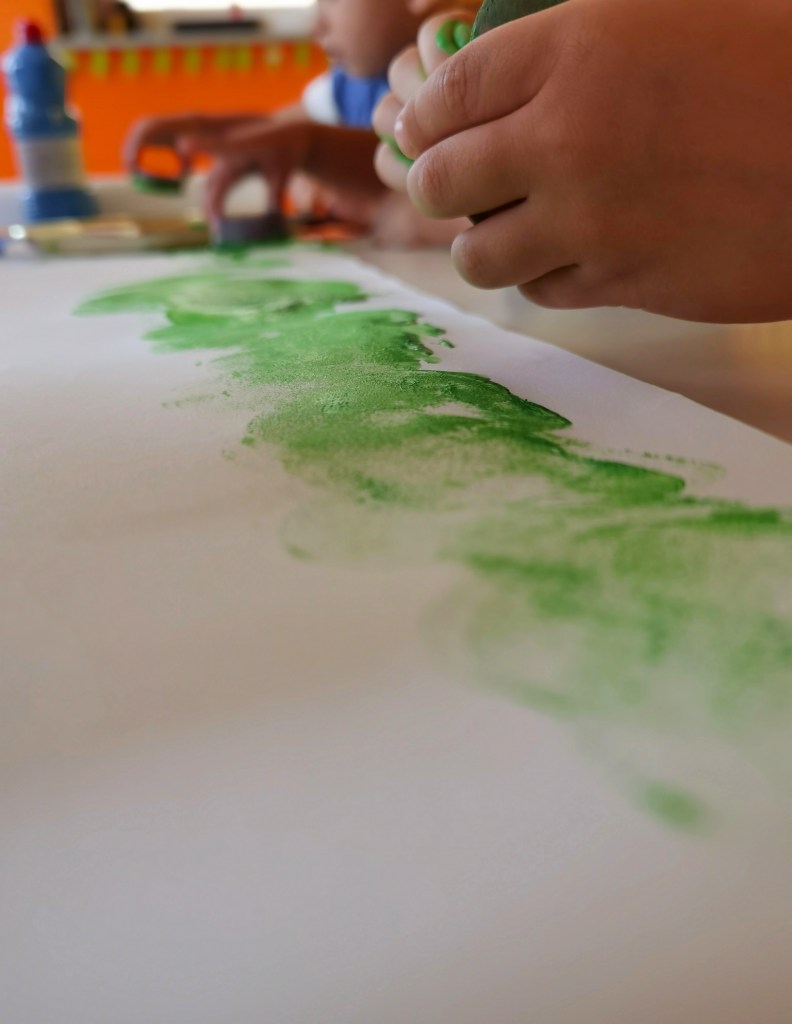 Abbiamo iniziato la settimana lasciando le nostre impronte colorate, che diventeranno dei meravilgiosi fiorellini, su un lunghissimo cartellone. 🏵️