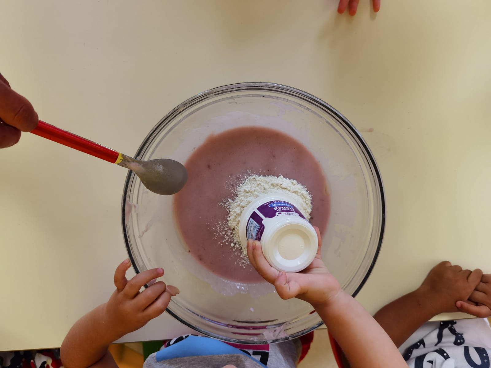 Yogurt, farina, lievito e tanto divertimento.. questa mattina ci siamo divertiti a preparare una torta, siamo stati proprio bravi 🍰👩🏼🍳👨🏼🍳