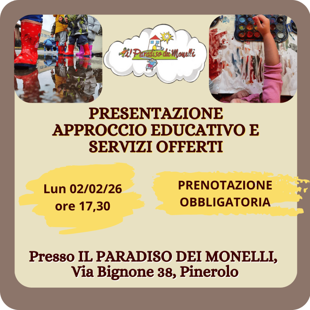 A Novembre 2025 abbiamo aperto una nuova sede di asilo nido ad Abbadia (Pinerolo) e per garantire continuità dal 2026 aprirà il servizio educativo 3-6 anni del Paradiso dei Monelli in entrambe le sedi.